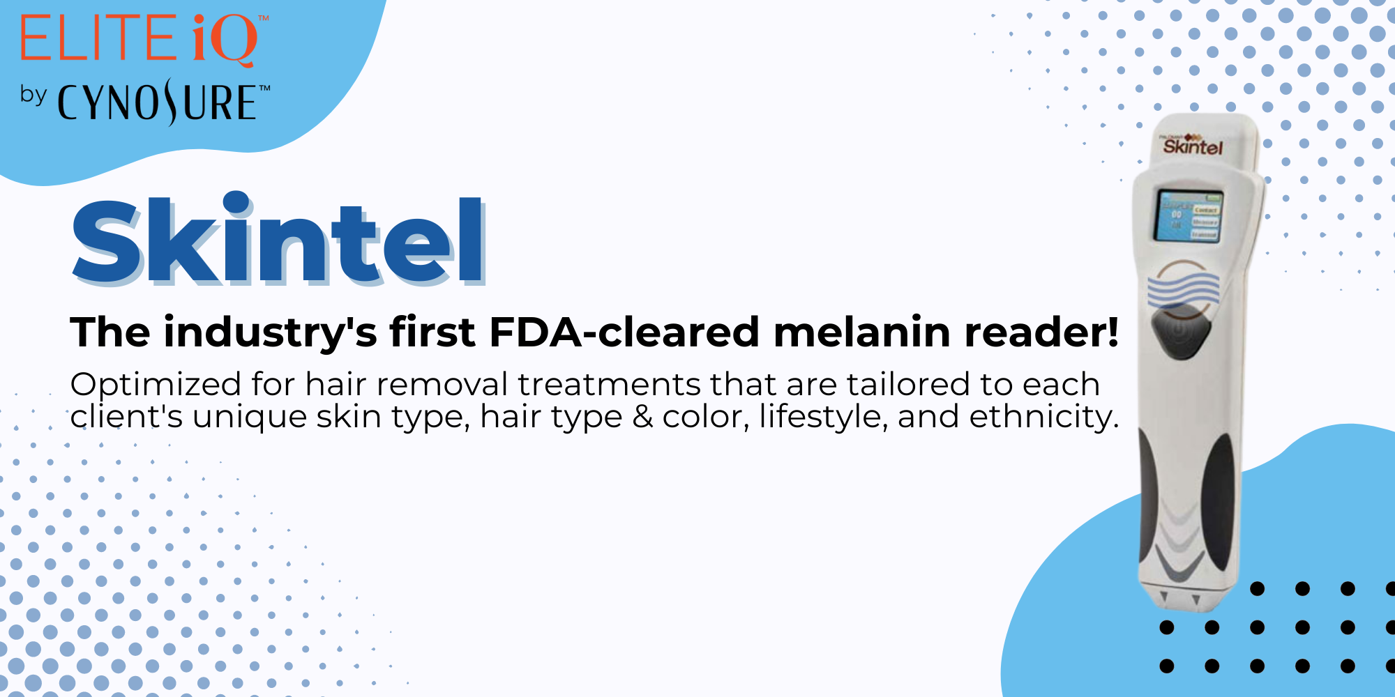 The Elite iQ Laser provides a fast, easy, and painless solution for permanent hair reduction for a wide range of skin and hair types.